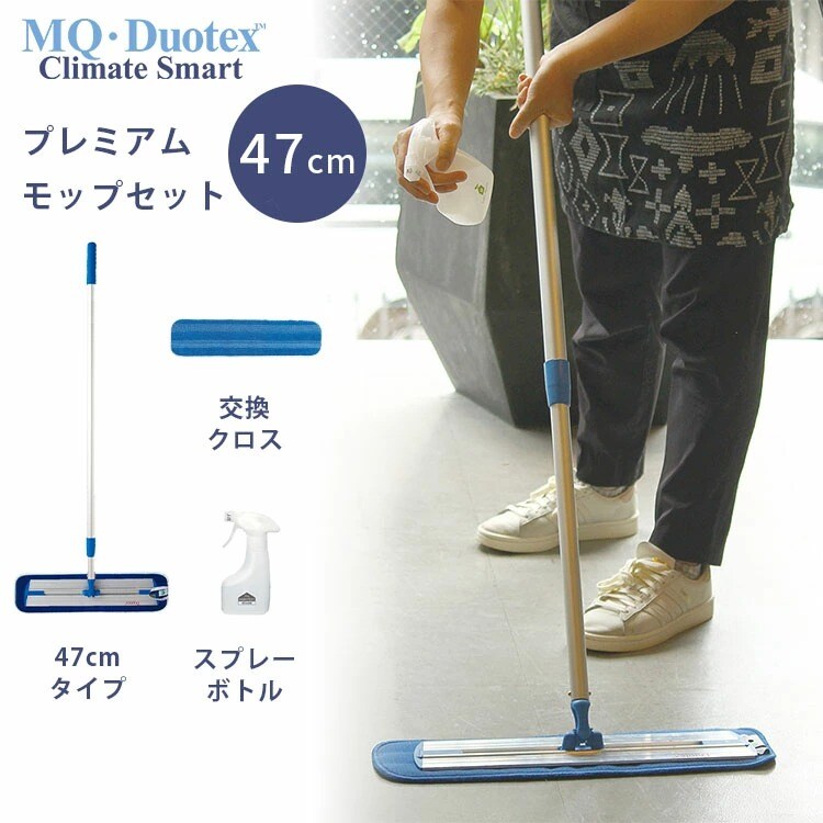 3点セット品 MQ・Duotex クライメートスマート プレミアムモップセット 47cmブルー+交換クロス1枚+スプレーボトル(エムキューデュオテックス 水拭きマイクロファイバー 洗える 掃除 フロアモップ)【送料無料】