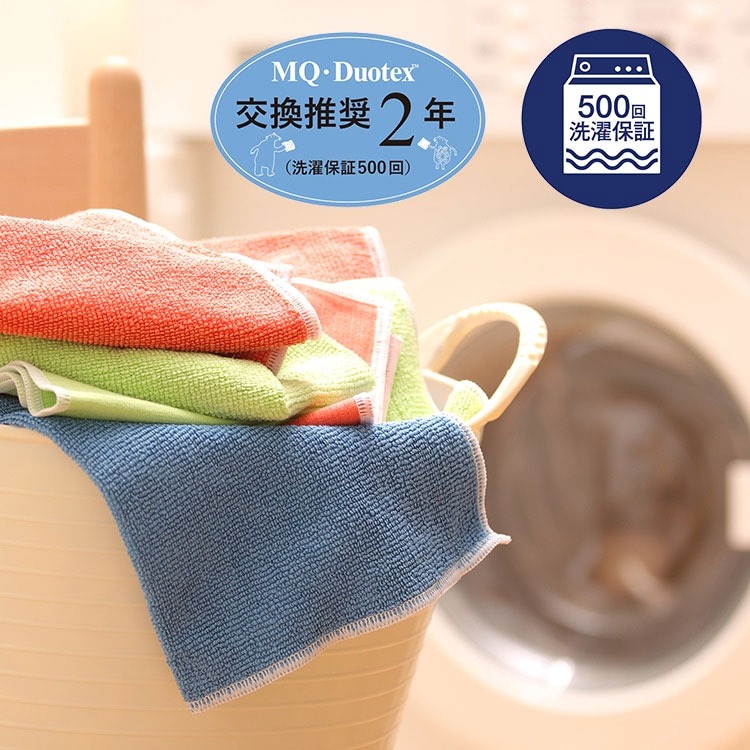 洗った後は、干してしっかり乾かしてください。病院清掃で使われているMQ・Duotexは、高圧滅菌消毒(オートグレーブ)も可能。熱に強く、90℃までの耐熱性があります。繊維を傷めるため、塩素系漂白剤の使用はオススメしません。 また、柔軟剤は繊維の機能を弱らせてしまうので使用しないでください。