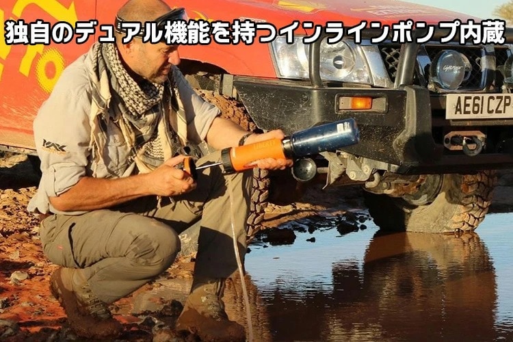 【正規販売店】【正規品】英国軍採用の携帯用浄水器。付属のスカベンジャーホースを使用すれば直接給水も可能。フィルターが限界になると通水を停止するフェイルセーフ・テクノロジー搭載。