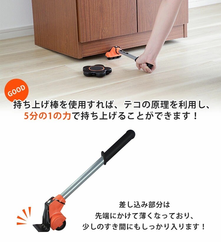 【正規販売店】360度自在に移動できる進化した台車と持ち上げ棒のセット!大掃除、引越し、模様替えなど、一家に1台あると便利!