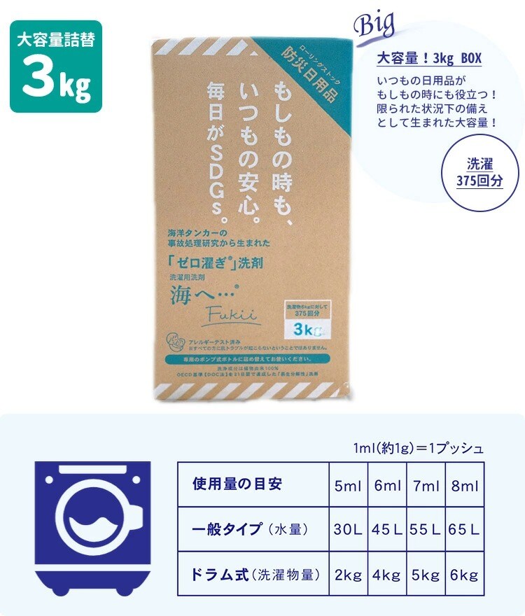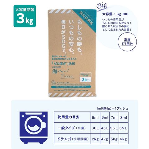 | 商品名 | 海へ…Fukii 洗濯用洗剤 3kg BOX |