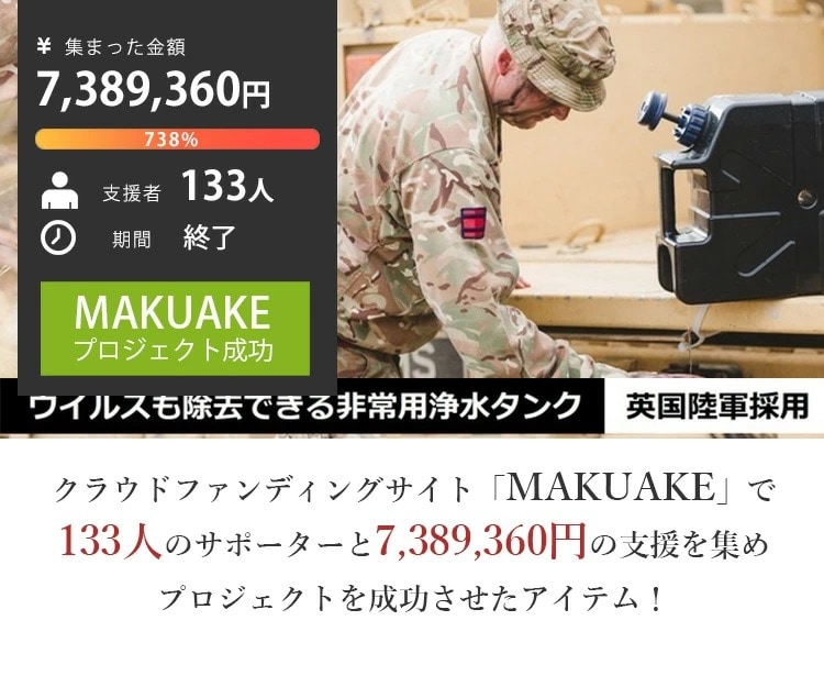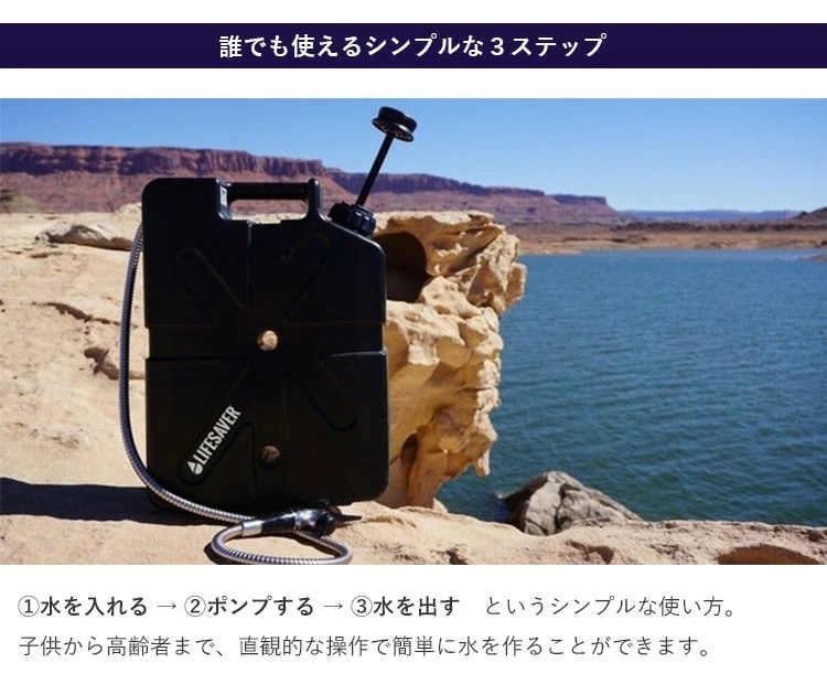 ■keyword:非常用浄水タンク/99.9%除菌/細菌/ウイルス/濾過/ろ過/地震/台風断水/緊急時/災害/グッズ/防災用品/防災グッズ/被災/避難/地震対策/災害対策/天災/ライフライン/アウトドア/浄水器/携帯用浄水器/マイケル・プリチャード/TED/英国陸軍/災害対策/断水/貯水/水/生活用水/台風/地震/大雨洪水/ライフライン/遮断/防災/避難/避難所/避難生活/衛生/非常用/フィルター/綺麗/キレイ/飲み水/アウトドア/キャンプ/LifeSaver/Jerrycan/イギリス/英国/クラウドファンディング/クラファン/MAKUAKE/マクアケ/