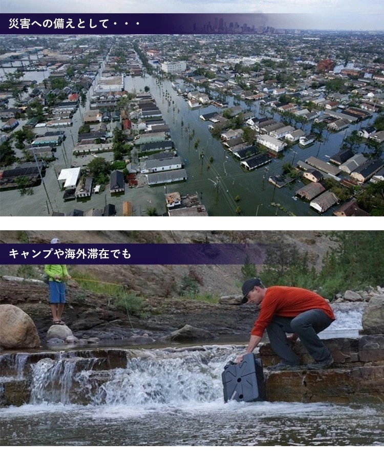 そんなときにLifeSaver Jerrycanがあれば、水道水やペットボトル水を浄水することができ、近くにある様々な水源から清潔な水を確保することができます。