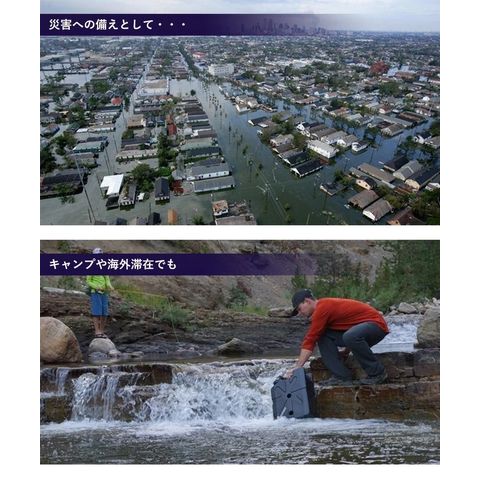 化学薬品や電気を使わずに、分速4L・最大20000L*を浄水可能。その機能性の高さから、英国陸軍や国際慈善団体等でも長年継続的に採用されており、災害が頻発する日本においても万が一の備えとして非常に有用な製品です。