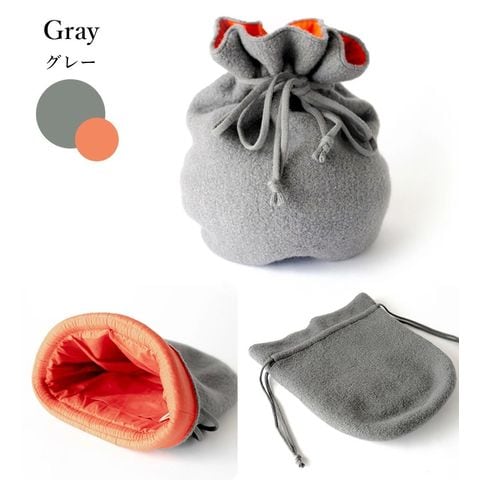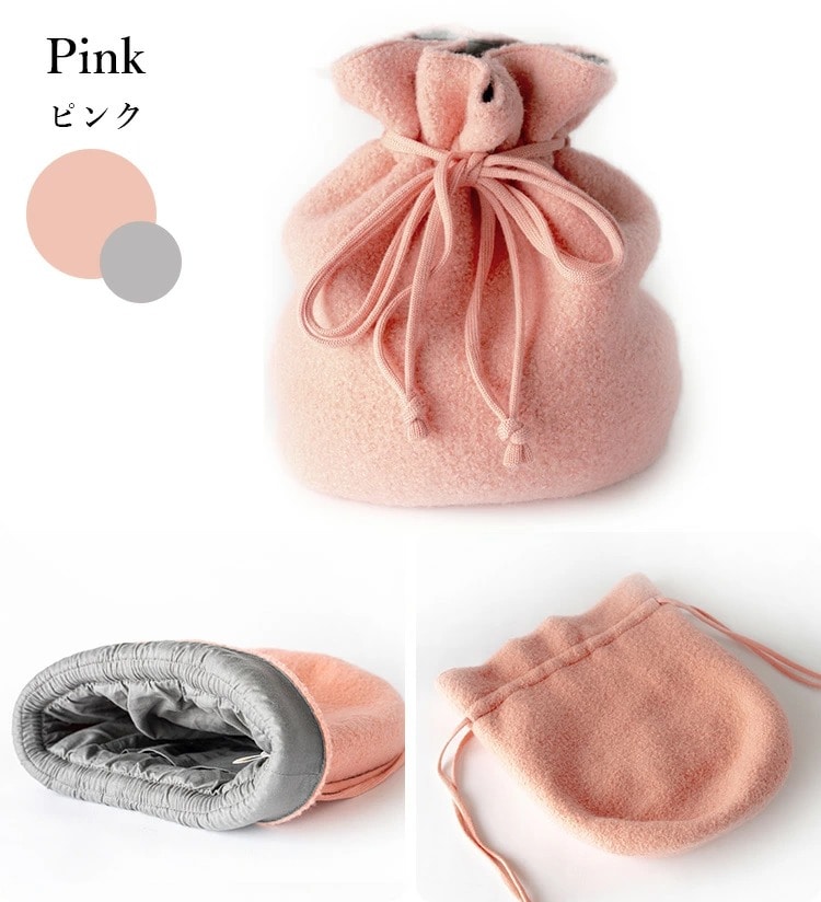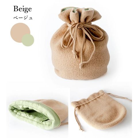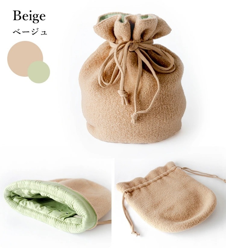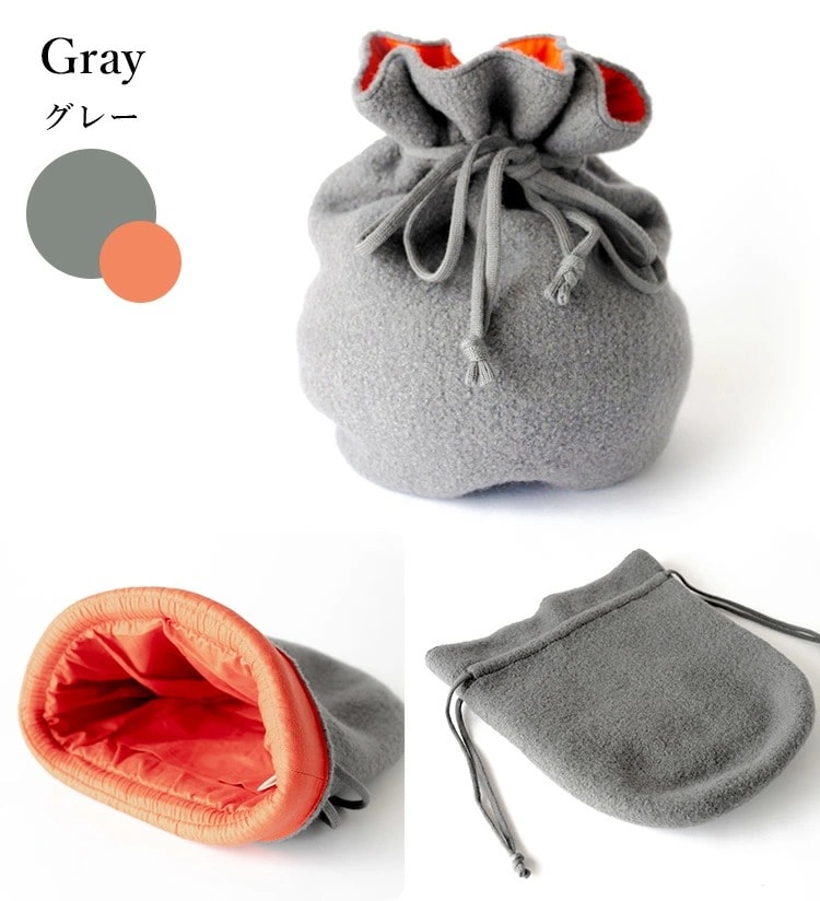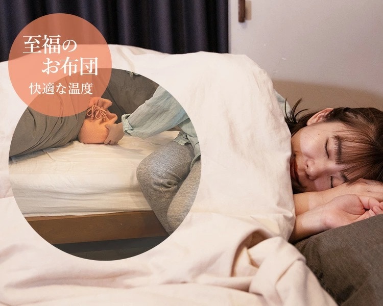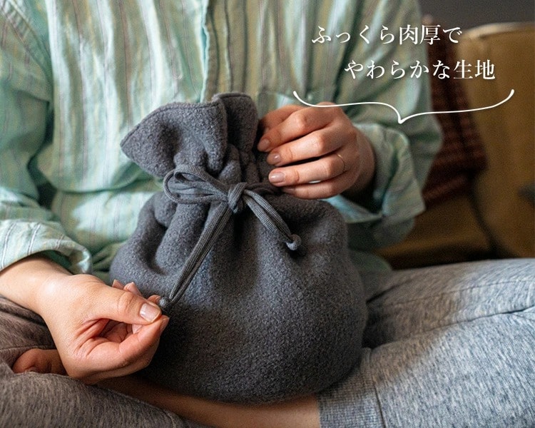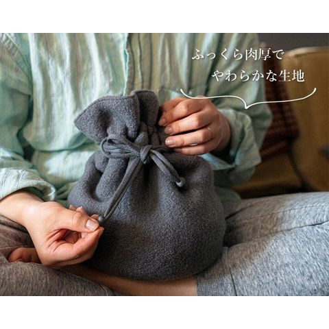 ウールカバーに包まれた状態なら生地の厚みのおかげで熱くなりすぎず快適な温度で布団を温め、さらに巾着を縛った少し背の高い状態で布団に入れることで、コタツのように包まれた空間ごと温めてくれるアイテムです。