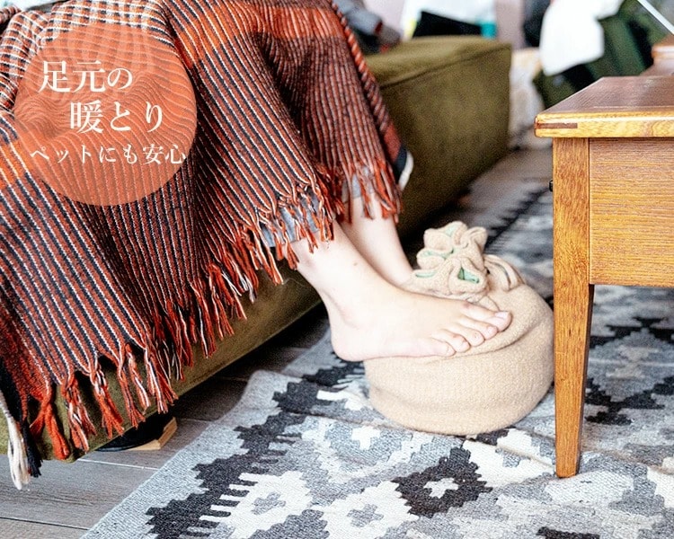 寝るとき以外にも、おうちでのリラックスタイムや、何となく肌寒いときにもオススメ。手足やひざ、おなかに置いておけば体をじわーっと温めて、少しだけエコに暖をとれたり、ひざに抱えた上にブランケットをかけると、一人用コタツのように楽しむことも。