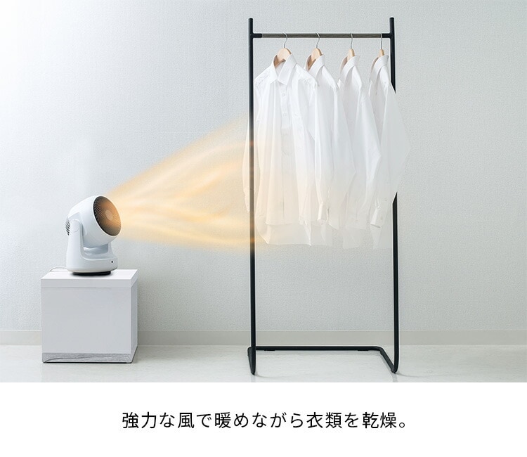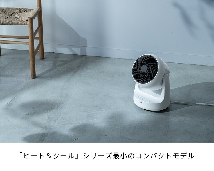 夏は涼しく、冬は暖かく、オールシーズン使える衣類乾燥機能付サーキュレーター「ヒート&クール」シリーズ最小のコンパクトモデル。 夏はサーキュレーターや扇風機として、冬は1200Wの暖房として使うことができます。 強力な風で暖めながら衣類を乾かすことによって、自然乾燥に比べて乾燥時間を約60%短縮します。 送風、暖房、衣類乾燥の1台3役で季節によって扇風機とヒーターを入れ替える手間もいらず、これ1台で年中通して活躍します。 |