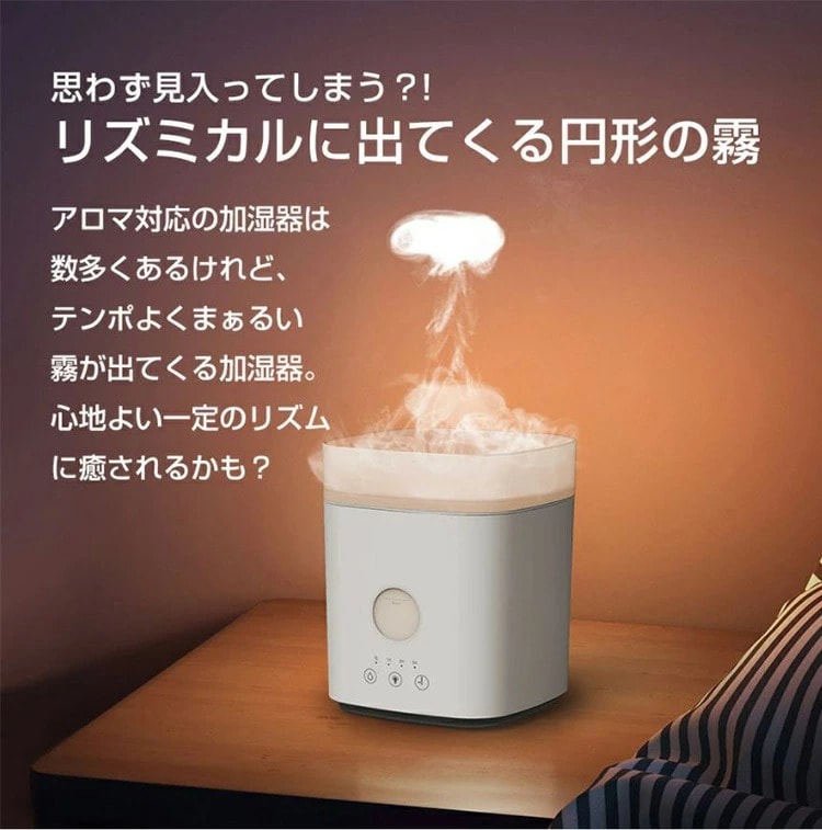 【正規販売店】ポンポンとリズムカルに円形の霧を噴出する卓上加湿器。上部給水&広々としたタンクでお手入れ簡単。明るさと色が選べるナイトライト付き。