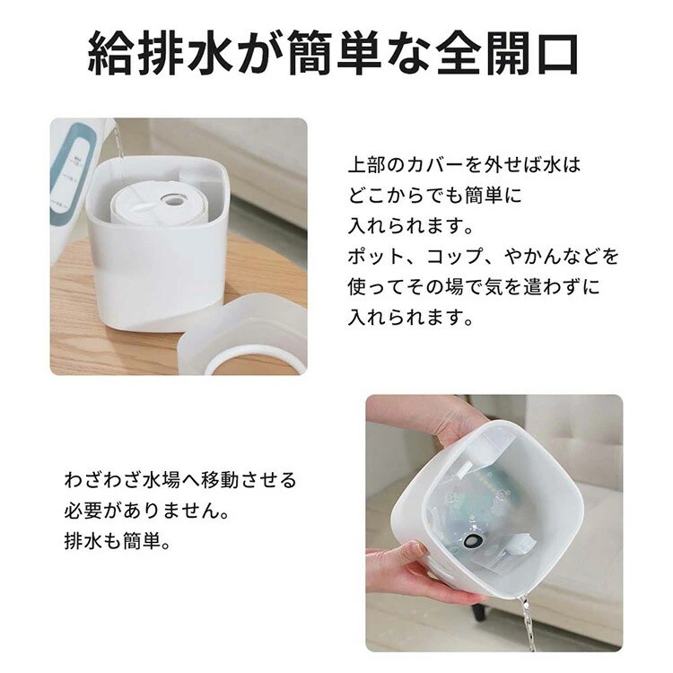 超音波加湿 wacca(輪っか)は、ポンポンとリズムカルに円形の霧を噴出する卓上加湿器です。 アロマ対応の加湿器は数多くあるけれど、テンポ良く円い霧が出てくる加湿器は如何でしょうか? 心地よい一定のリズムに癒される、人気のアイテムです。 560ml対応で上からそのまま給水出来るから、とっても楽々。 広々としたタンクでお手入れも簡単です。 加湿器の衛生が気になる方も、こちらの加湿器なら安心です。 またコンセント部分は取り外し可能なため、お水を捨てる際にも便利です。 |