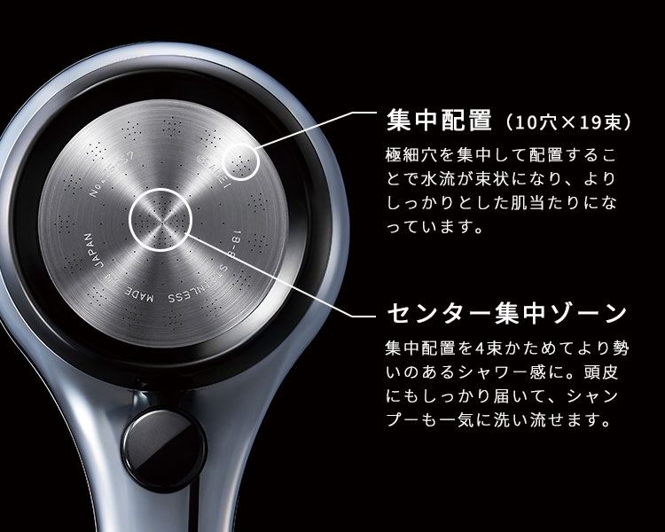 極薄のステンレス板だから実現した、直径0.3mmの極細穴が227個。穴径を絞ることで勢いを上げています。たくさんのシャワーを開発してきた当社ならではのロジックに基づいたシャワー板設計で、極細水流ならではのなめらかさとしっかりと洗い流せる勢いの絶妙なバランスを実現しています。 また、【RAINY】のシャワー板はリングを回すだけで簡単に外すことが可能です。シャワー板を外して目詰まりを取り除いたり、メンテナンスを行うこで、ご自宅で簡単に、いつまでも綺麗な状態を維持することができます。 |