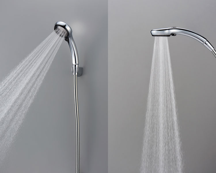 繋ぎ目まで意識した仕上がりは、こだわりのあるオシャレな浴室でも高級感のある輝きを放ちます。 安心してシャワーをお使いいただくために、本体のメッキが剥がれにくい二重構造仕様になっています。 |