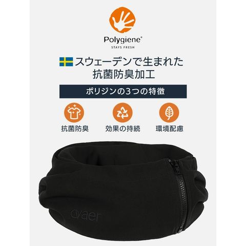 同じくスウェーデン生まれ、ポリジン社で開発された抗菌防臭テクノロジー「Polygiene BioStatic™(ポリジン・バイオスタティック)」が新たに施されました。 気になる汗のニオイや菌の繁殖を抑えるテクノロジーにより、頻繁な洗濯は不要です。 |