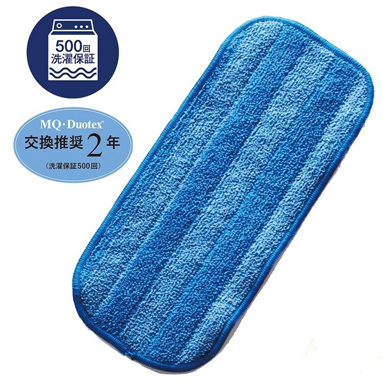 ●Duotexテクノロジー「水だけで」 ケミカルを使用しないドライとウェットの両方で、大腸菌・黄色ブドウ球菌99.5%を除去 プロフェッショナルユーザー向けに特化開発されたMQ・Duotex。 ほんの少しの水と使うだけで汚れ、菌99.5%、花粉97.7%まで取り除けます。水スプレーを使うとお水がクロスに行きわたりお掃除効果と効率アップ。 洗剤は一切使わないから、手肌が荒れる心配もなく、小さなこどもやペットがいるご家庭に安心です。 ●最先端テクノロジーから生まれたウルトラマイクロファイバー 髪の毛の1/120の極細繊維が、目に見えない凹凸に入り込んで小さな汚れをかき取ります。MQ・Duotexでお掃除したあとは、手触りサラサラ。 食中毒の原因となる大腸菌、黄色ブドウ球菌、花粉もかき取ります。 お掃除パフォーマンスを上げるためには、場所ごとにモップクロスを取り替え、汚れを他に移さないオフロケーション方式で使ってください。 ●床・天井・壁・窓 1本で全方位お掃除 エルゴノミックデザイン(人間工学)に基づき開発されたプレミアムモップは、ハンドルを100?180まで長さを自由に調節できます。 床だけでなく、壁、窓、網戸あきらめていた天井までスムーズ。 クロスを取りけるホルダーは、可動域が広く、1本あれば家中スイスイお掃除できます。 ●立ったままクロスの交換OK! クロスのセットから取り外しまで、中腰にならず立ったまま操作ができます。 1.クロスの両端を足で踏みながらハンドルを持ち上げる 2.ホルダーの向きを変えて面ファスナーにペタッ。 3.ハンドルを持ち上げてクロスを取り外します。 ●プロ仕様の耐久性。500回洗っても効果が持続。 モップクロスは500回洗濯保証の耐久性。長く効果が続きます。使った後は、大きなゴミを取り除き、洗濯機に入れて通常通りのお洗濯。洗った後は、干してしっかり乾かしてください。 病院清掃で使われているMQ・Duotexは、高圧滅菌消毒(オートグレーブ)も可能。熱に強く、90℃までの耐熱性があります。 繊維を傷めるため、塩素系漂白剤の使用はオススメしません。また、柔軟剤は繊維の機能を弱らせてしまうので使用しないでください。 モップクロスは2年での交換を推奨しています。 ●サッと使えるスマートモップ ホルダーとハンドルは取り外しが可能。コンパクトに収納したいときは分解して収納できます。 スマートモップなので、手の届く所に定位置を作れば、いつでも必要なときにサッと使えます。便利に使えてればお掃除が快適に、たのしくなります。 ハンドルにはフック穴もあるので、吊るして収納するとより衛生的です。 |