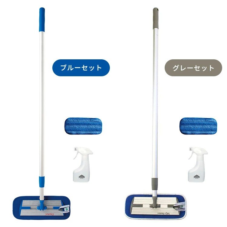 3点セット品 MQ・Duotex クライメートスマート プレミアムモップセット 30cmブルー+交換クロスWH+スプレーボトル 【グレー】 (エムキューデュオテックス 水拭きマイクロファイバー 洗える 大掃除 年末)【送料無料】