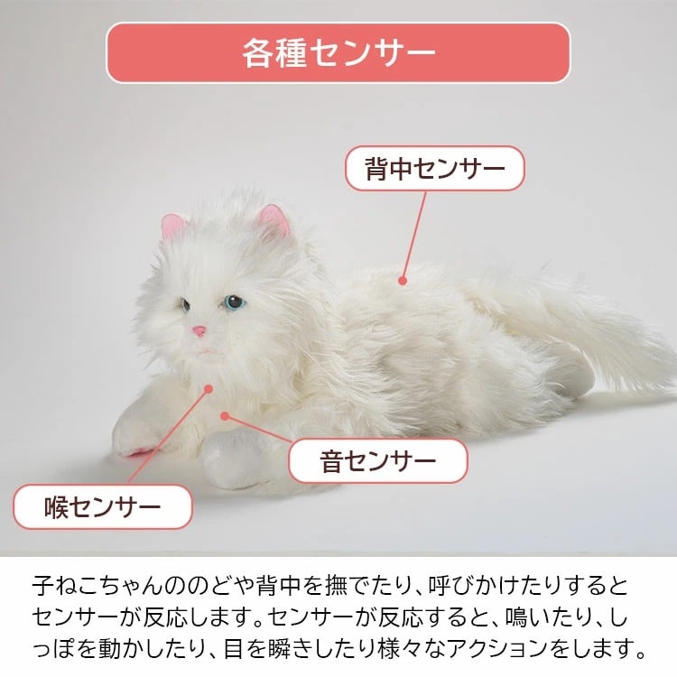 ■keyword:ねこ/ネコ/猫/猫ちゃん/ネコちゃん/子猫/子ねこ/キャット/本物みたい/癒し/笑顔/瞬き/しっぽ/動く/感情表現/なでなで/声に反応/ふれあい/成長/ふわふわ/抱き心地/ペットロボット/子猫型/センサー/子供/キッズ/高齢者/単身/一人/一人暮らし/孫/家族/ファミリー/猫アレルギー/賃貸/一軒家/戸建て/アパート/マンション/年配/簡単/スリープ/ポーズ/写真/撮影/映え/コミュニケーショントイ/玩具/猫の日/ネコの日/ねこの日/プレゼント/誕生日/バースデー/贈り物/子供の日/敬老の日/友達/入学祝い/卒業祝い/出産祝い/白/ホワイト/white/しろ/シロ/猫型ロボット/おもちゃ/母の日/ 父の日/敬老の日/ギフト/おすすめ/通販/人気/本物そっくり