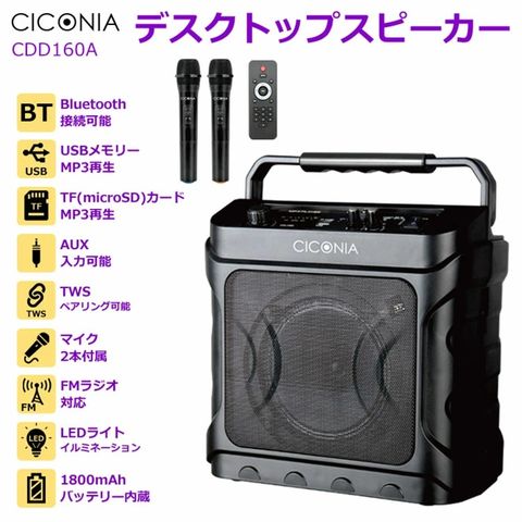 CICONIA デスクトップスピーカー CDD16A チコニア (Bluetooth対応 ワイヤレスマイク 録音可能 バッテリー内蔵 高音質 コンパクト 持ち運び 室内 屋内 屋外 アウトドア 会議 音楽再生 カラオケ ガジェット)【送料無料】