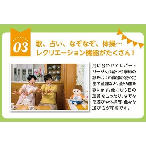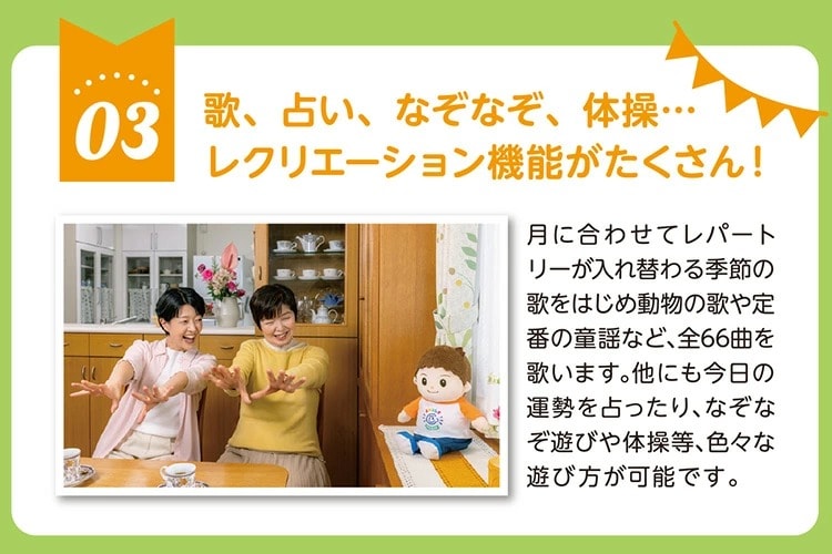 3.歌、占い、なぞなぞ、体操…レクリエーション機能がたくさん