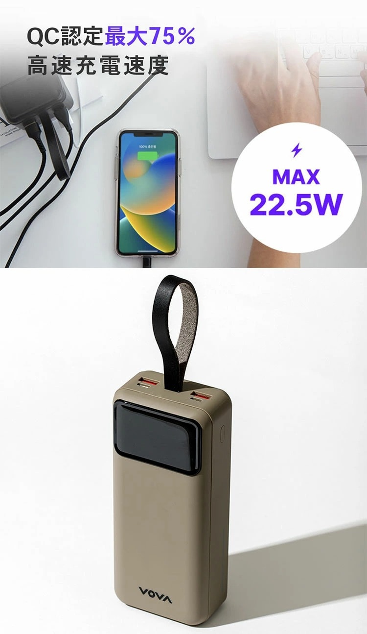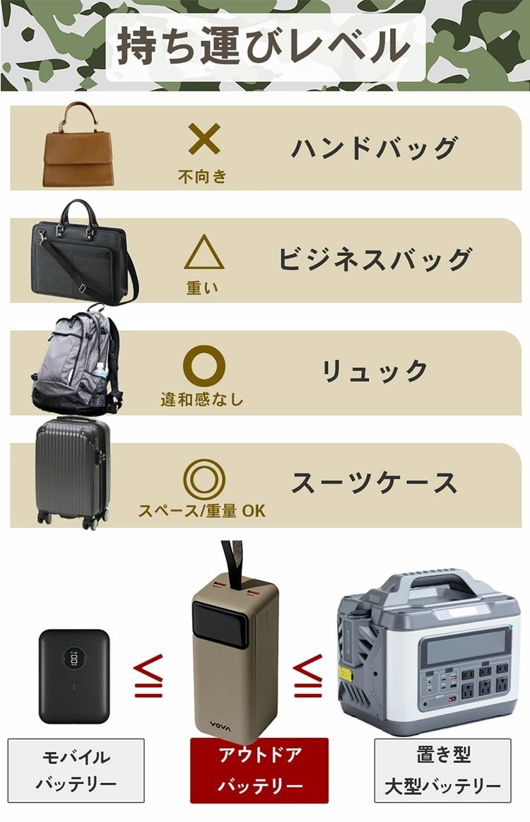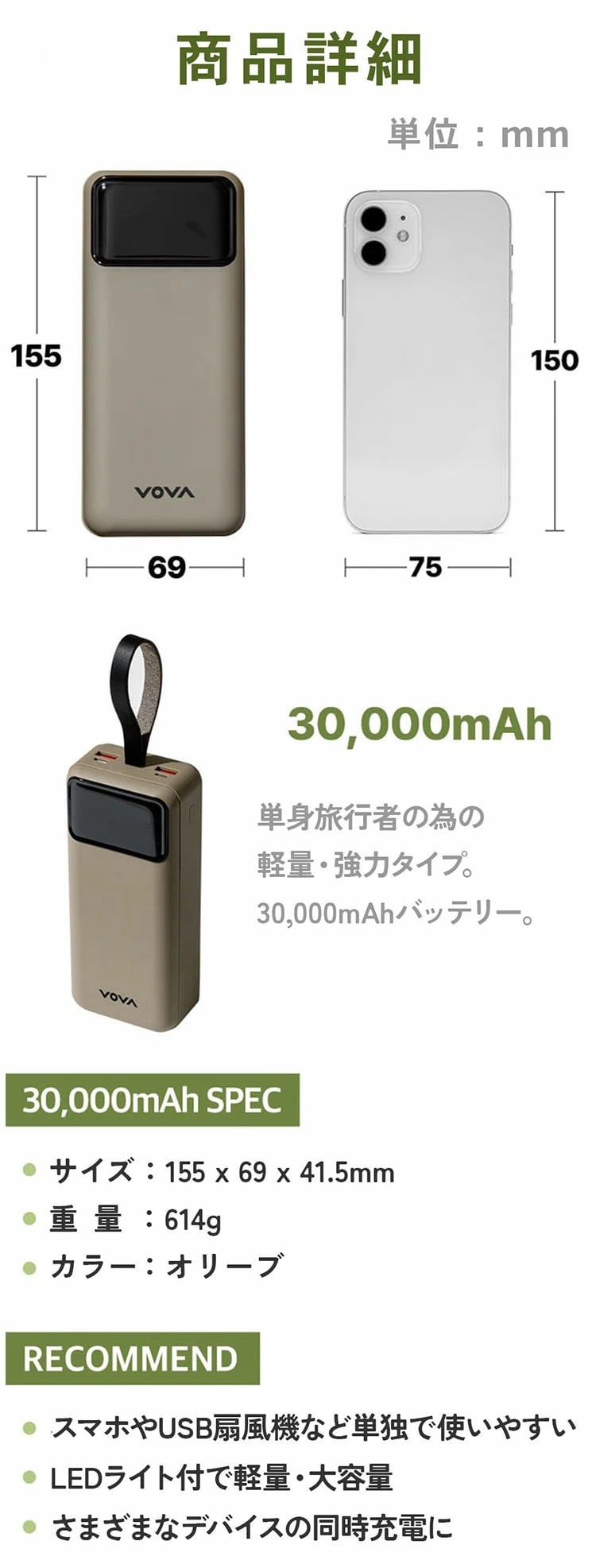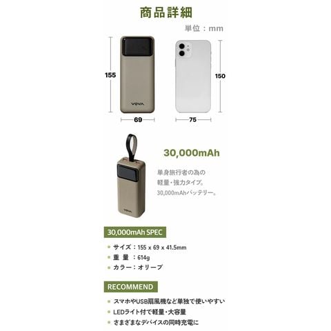 VOVA 大容量アウトドアバッテリー 30000mAh VA-130 (モバイルバッテリー VOVA ポータブル電源 キャンプ 災害対策 USB充電 縦 機内持ち込み LEDランタン ライト フルークフォレスト)【送料無料】