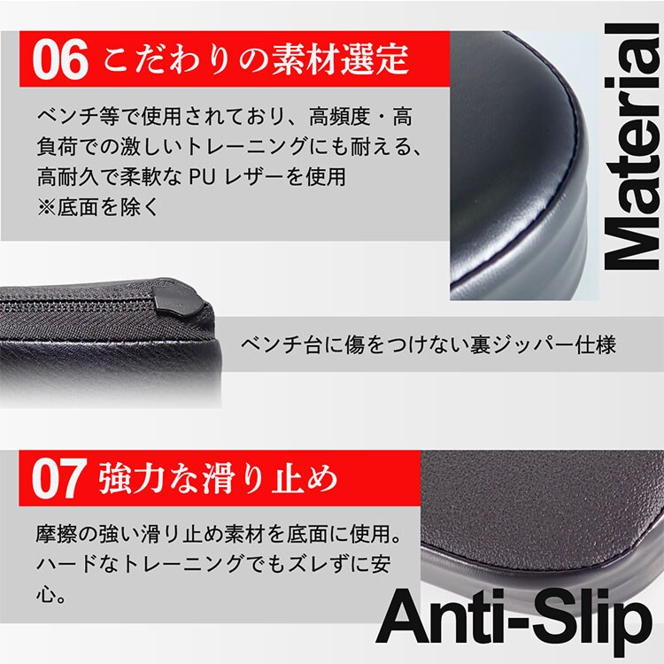 “狂気の男”ボディビルダー合戸孝二考案 「合戸式 大胸筋肥大ペックパッド」で狂気の筋肥大を起こせ! 「全国大胸筋肥大計画」始動! 合戸式大胸筋肥大パッドは合戸 孝二氏の全面協力の元、専門機関を通じて現物の精密な測定と分析を行い膨大な試行錯誤を繰り返した結果、価格帯を大幅に抑えながらも手作りの一点物と同等の性能を持つ完全再現に成功したパッドです。 胸トレの刺激と効率を大幅に向上させ、このパッドを使うトレーニーの大胸筋が狂気的に発達する未来を望んでいます。 【長年のトレーニング&改善で積み重ねられてきた究極の形】 ●大胸筋肥大に理想的なフォームを保持するためのくびれがあるサドル型。 ●トレーニーの身体+ウエイト荷重を吸収し快適な使用感を実現する十分な厚み。 ●一般的なトレーニング強度はもちろん、高重量を扱う上級者にも対応した、硬すぎず柔らかすぎない適度な硬さ。 ●傾斜面にすることで急な段差による腰の負担やパッドの形状崩れを軽減。 ●大胸筋のストレッチに特化した曲面。 ●高頻度・高負荷での激しいトレーニングにも耐えるこだわりの素材。 ●強力な滑り止めでハードなトレーニングでもズレずに安心。 |