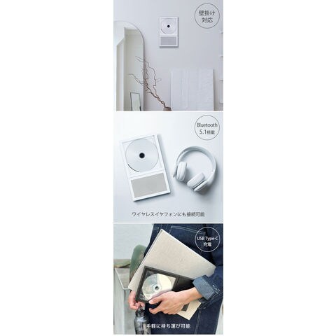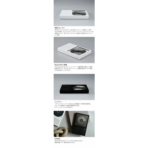 CDとジャケットアートをスピーカーでも愉しむ。ワイヤレスCDプレーヤー【第二弾】! 【01】CDジャケットをアートの様に愉しむフォトフレーム・デザイン、壁掛けにも対応 【02】薄型スピーカー搭載またBluetooth 5.1搭載でワイヤレスイヤフォンにも接続が可能 【03】リチウムイオンバッテリーを搭載、USB Type-Cで充電し手軽に持ち運びが可能 |