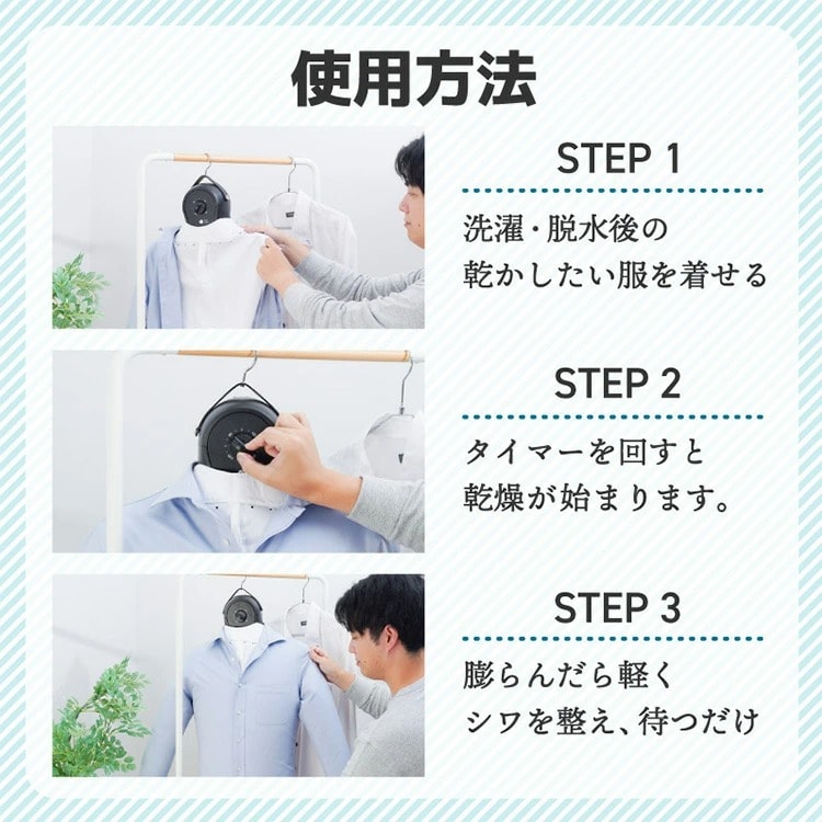 【正規販売店】最短30分、ハンガーにかけるだけで乾燥&シワが伸びる!生乾き臭が気になる方にもピッタリ!分解できるので出張・旅行にも持ち運び◎