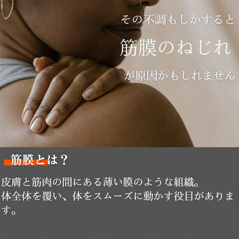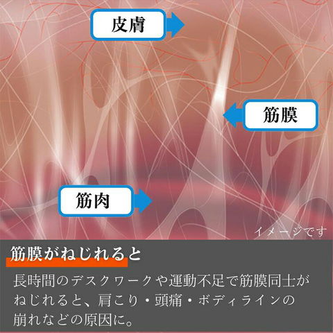 日々の仕事疲れで身体が硬くなってしまった人へ! 体のメンテナンスをお手伝い! 運動不足やデスクワークにより筋膜がねじれ、肩こり・頭痛・ボディラインの崩れの原因になります...。 凝り固まった筋膜を置く深くまで刺激し、身体のトラブルをケアしましょう! |
