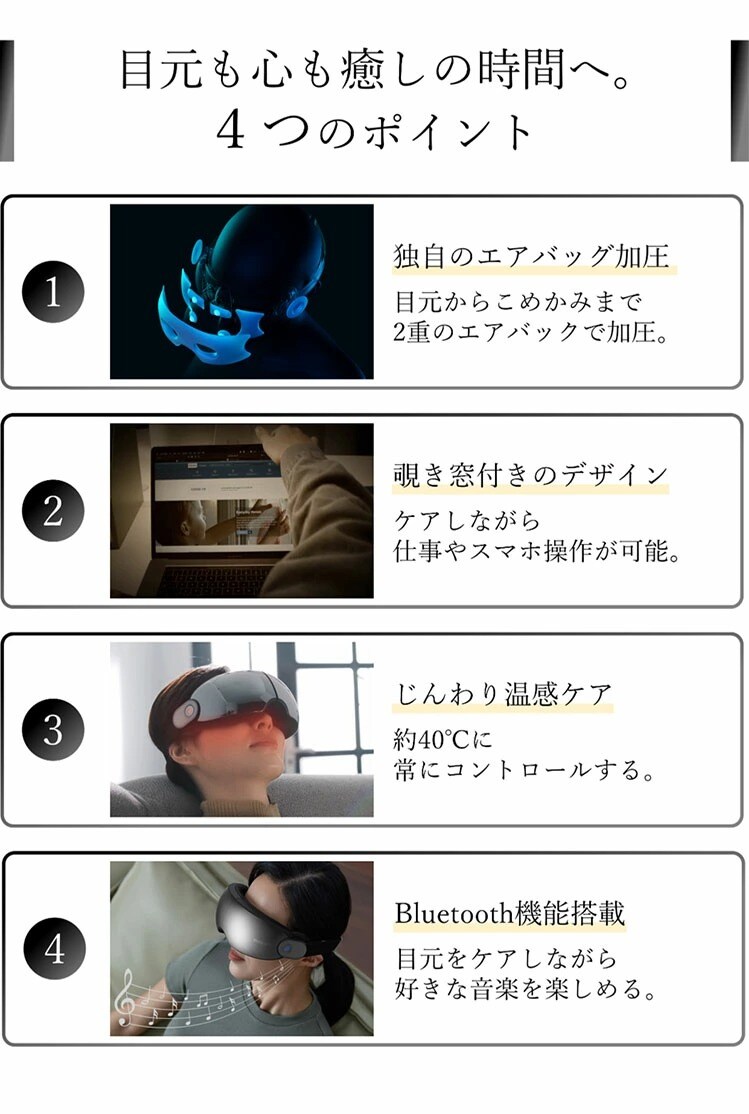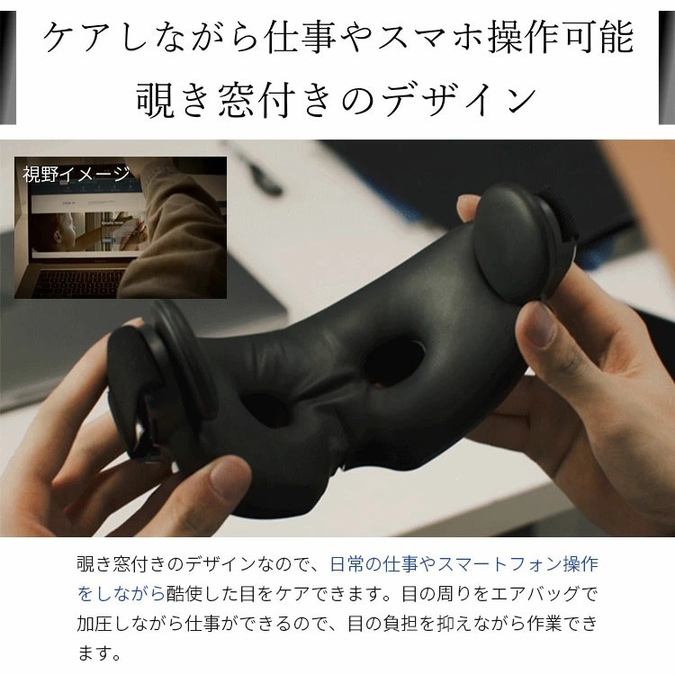 【正規販売店】独自のエアバック加圧搭載!目元からこめかみまで上質ケア。覗き窓付きデザインで「ながらケア」が可能!