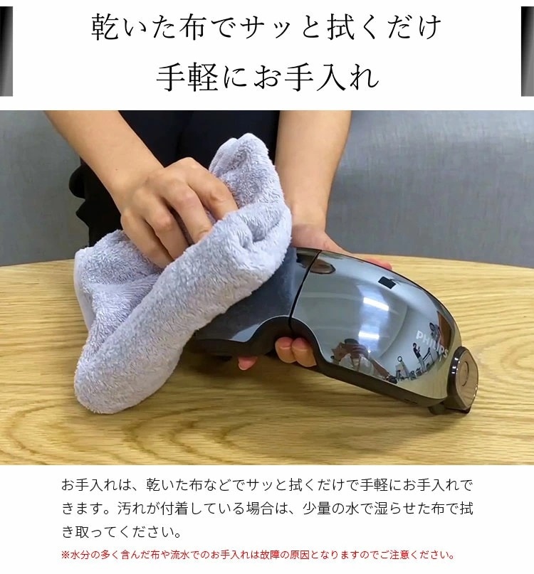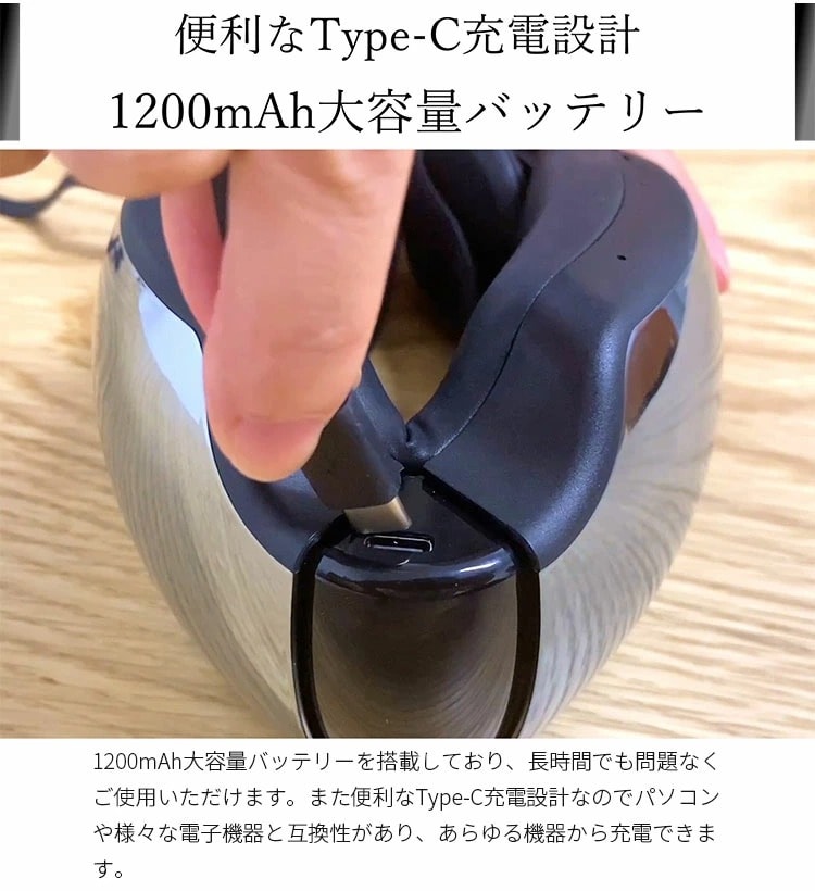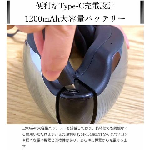 | 仕様 | ■温める温度:40±2℃ ■ケア方式:AirEaseエアバッグ+ケアアタッチメント ■バッテリー容量:1200mAh ■仕事電圧:3.7V ■消費電力:4W ■充電電流:500mA ■電圧:5V ■充電端子:USB Type-C |