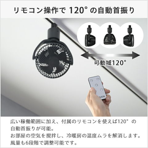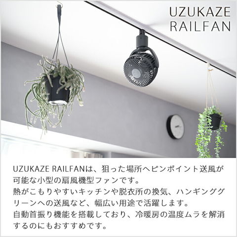 【正規販売店】狙った場所にピンポイント送風!小型レールファンUZUKAZE RAILFAN。換気や温度ムラ解消に。首振り・風量6段階・簡単設置お手入れ楽々。