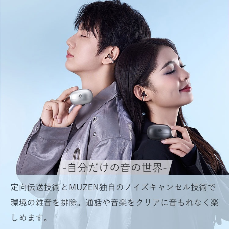 MUZEN Trickle イヤーカフ型イヤホン MWW3I 【シルバー】(完全ワイヤレスイヤホン イヤフォン オープンイヤー型 ノイズキャンセリング ノイキャン Bluetooth対応 Type-C充電)【送料無料】