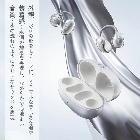 ●水滴をイメージした洗練されたデザイン 滑らかなボディとメタリックカラーを採用し、アクセサリー感覚で装着できるイヤーカフ型イヤホン。 ●音漏れしにくい設計 独自の音響技術により、クリアなサウンドを楽しめながらも周囲への音漏れを最小限に抑えます。 ●通話ノイズキャンセリング 周囲の雑音を軽減し、クリアな音声通話を実現。リモートワークや外出先での通話も快適です。 ●快適な装着感 イヤーカフ型デザインにより、耳を圧迫せず、長時間の使用でも快適に装着できます。 ●アクセサリー感覚で楽しめる イヤホンとしての機能だけでなく、ファッションアイテムとしても活用できるデザイン性の高さが魅力です ●最大38時間のバッテリー持続 長時間の使用が可能。外出時や長時間のリスニングでも安心です。 ●ロスレスオーディオ対応 原音に忠実なサウンド体験を提供します。 |
