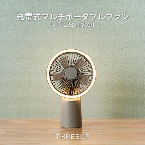 THREEUP 充電式マルチポータブルファン DF-T2233【グレージュ】スリーアップ 扇風機 ポータブル扇風機 充電式扇風機 コードレス扇風機 卓上扇風機 ミニ扇風機 携帯扇風機 ハンディファン)
