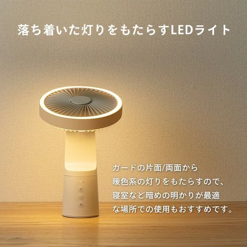 優しい暖色LED:寝室やテント内を心地よく照らします。(片面/両面切替) モバイルバッテリー:お持ちのケーブルでスマホなどを充電可能。 コードレス:充電式だからコンセントなしでどこでも使えます。 マグネット内蔵:スチール面にピタッと固定して使えます。 アロマ対応:お好みのアロマで香る風を送れます。 風量3段階:お好みに合わせて調節できます。 首振り機能:自動左右、手動上下で調節可能。 |