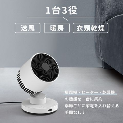 【正規販売店】夏は涼風、冬は暖房、梅雨や雨の日は衣類乾燥。オールシーズン活躍!1台3役のサーキュレーター。省エネヒーター搭載で電気代も節約。