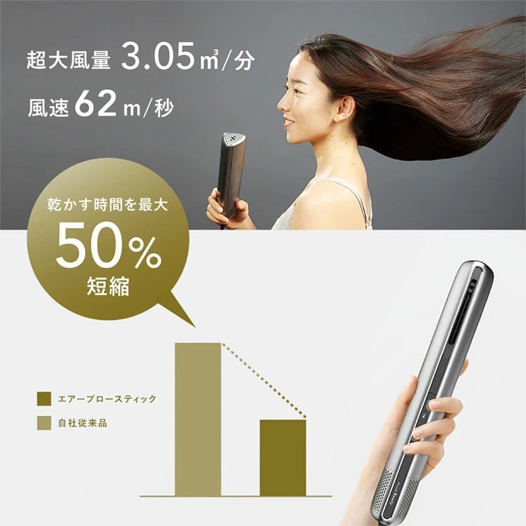 【正規販売店】超高速乾燥!風量3.05m3/分&風速62m/秒で時短仕上げ。軽量330gで手疲れ知らず。5段階温調+冷風で髪のツヤと健康をキープ。静音設計でストレスフリー!
