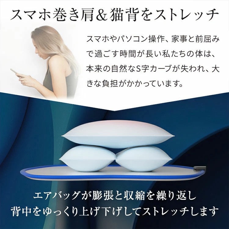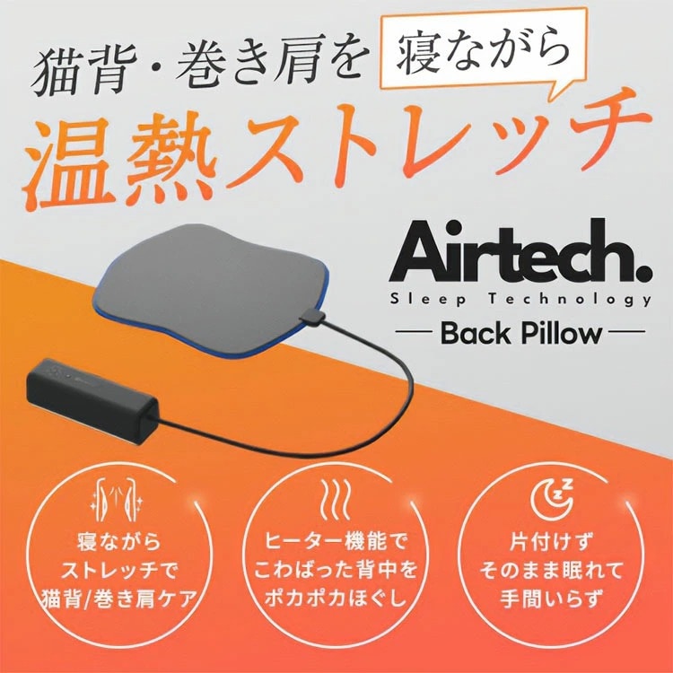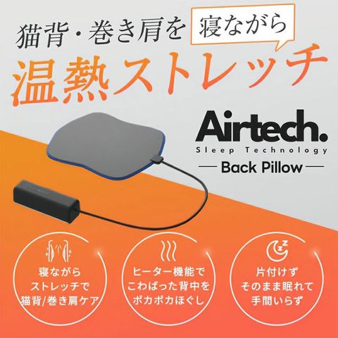 【正規販売店】猫背・巻き肩に!エアテックバックピローで寝ながらストレッチ。3モード搭載で胸を開き背筋スッキリ!テレビ紹介品でギフトにも◎