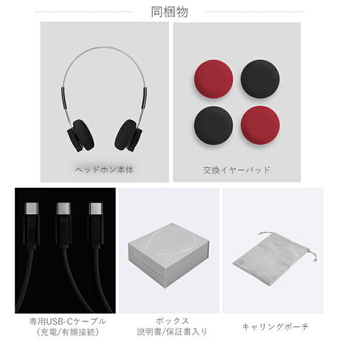 | セット内容・構成品 | ・ヘッドホン本体 ・専用USB-Cケーブル(充電/有線接続) ・交換イヤーパット ・キャリングポーチ ・説明書/保証書 |