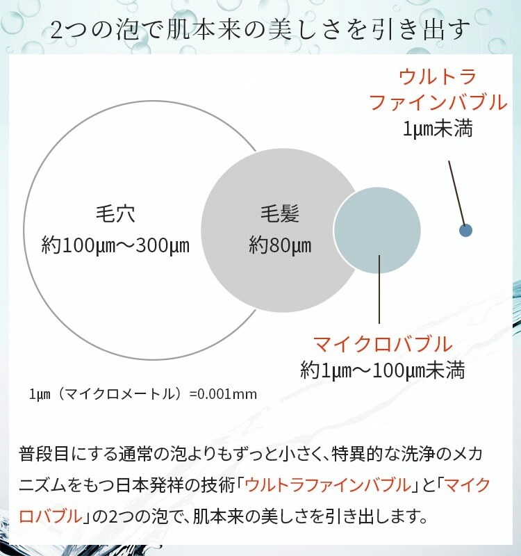 | 肌を美しくする2つの泡 ウルトラファインバブルとマイクロバブル |
