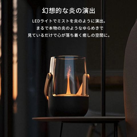 ●どこへでも連れていける 充電式で持ち運び自由。バンブーハンドルがアクセントになったデザインは、どんな場所にも馴染みます。 ●幻想的な炎の演出 冷たいミストが作り出す、まるで本物の炎のようなゆらめき。見ているだけで心が落ち着く癒しの空間を演出します。 ●屋外でも安心のIP44防水 テラスやバルコニー、キャンプなど屋外でも活躍。突然の雨にも対応できるIP44の防塵・防水性能を備えています。 ※完全防水ではありません。 ●天然のアロマで虫よけ対策 エッセンシャルオイルを使用することで、気になる虫を寄せ付けません。特に屋外使用におすすめのオイルは、レモングラス、シトロネラ、ユーカリ、ペパーミント、ゼラニウムなどです。 ●給水もラクラク 本体上部のカバーを開けるだけで、簡単に給水が可能。お好きなアロマオイルを1?2滴垂らすだけで、すぐに香りが広がります。 |