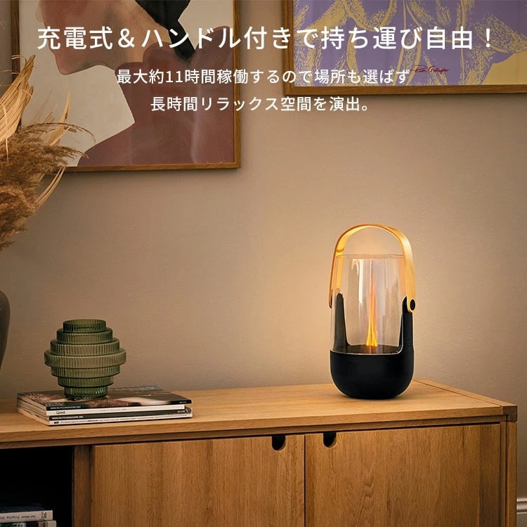●どこへでも連れていける 充電式で持ち運び自由。バンブーハンドルがアクセントになったデザインは、どんな場所にも馴染みます。 ●幻想的な炎の演出 冷たいミストが作り出す、まるで本物の炎のようなゆらめき。見ているだけで心が落ち着く癒しの空間を演出します。 ●屋外でも安心のIP44防水 テラスやバルコニー、キャンプなど屋外でも活躍。突然の雨にも対応できるIP44の防塵・防水性能を備えています。 ※完全防水ではありません。 ●天然のアロマで虫よけ対策 エッセンシャルオイルを使用することで、気になる虫を寄せ付けません。特に屋外使用におすすめのオイルは、レモングラス、シトロネラ、ユーカリ、ペパーミント、ゼラニウムなどです。 ●給水もラクラク 本体上部のカバーを開けるだけで、簡単に給水が可能。お好きなアロマオイルを1?2滴垂らすだけで、すぐに香りが広がります。 |