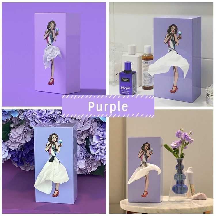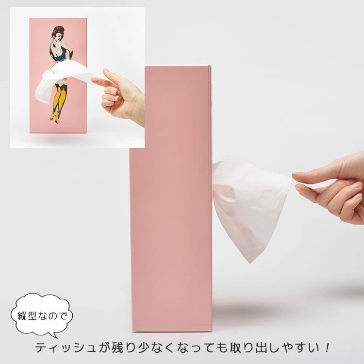 ● ティッシュがスカートに!?ユニークなデザイン まるで女性のスカートがふわりと風になびいているような、個性的なデザインが特徴。ティッシュを引き出すたびに、スカートの長さやデザインが違うように見えて、飾る楽しみが広がります。 ● どんなインテリアにも馴染むポップなカラー 韓国インテリアらしい、気分が上がるポップなカラー展開も魅力。リビングやパウダールームはもちろん、デスクトップサイドやキッチンにも、空間のアクセントとして彩りを添えてくれます。 ● 残りわずかでも取り出しやすい機能性 ティッシュが少なくなっても取り出しやすい構造になっています。ストレスなく最後まで使えるので、見た目だけでなく使い心地も抜群です。 |