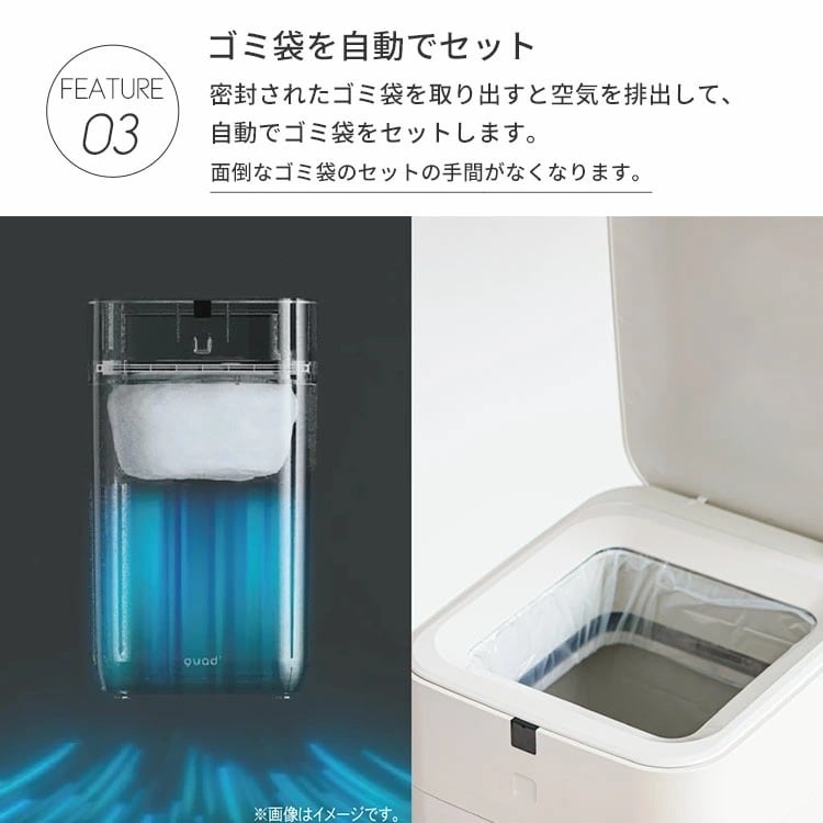 ■keyword:4580726873509/4580726873516/QUADS/クワッズ/ゴミ箱/自動開閉/センサー付き/スマートゴミ箱/賢いゴミ箱/密閉/自動/密封/UV除菌/オートパッキング/自動梱包/コードレス/USB充電/蓋つき/フタ付き/おしゃれ/スタイリッシュ/シンプル/インテリア/雑貨/デザイン/家電/生活家電/新生活/一人暮らし/便利グッズ/時短家事/衛生/清潔/タッチレス/キッチン/リビング/寝室/子供部屋/介護/オフィス/店舗/病院/介護施設/ジム/水回り/防滴/IPX3/衛生的/におい漏れ防止/におい対策/匂い対策/オムツ/生ごみ/衛生的/スマート家電/ダストボックス/くずかご/オート/クリーン/ゴミ処理/ロール式ゴミ袋/掃除道具/簡単操作/音声ガイド/静音/静か/スリム/大容量/ごみ袋セット/手間いらず/大容量//プレゼント/贈り物/新生活/入籍祝い/結婚祝い/新築祝い/内祝い/引き出物/引っ越し祝い/引越し祝い/引越祝い/転居祝い/入社祝い/就職祝い/転職祝い/昇進祝い/就任祝い/退職祝い/送別/開店祝い/開業祝い/開院祝い/移転祝い/出店祝い/新店祝い/周年祝い/オープン祝い/大学生/社会人/10代/20代/30代/40代/50代/60代/70代/女性/男性/