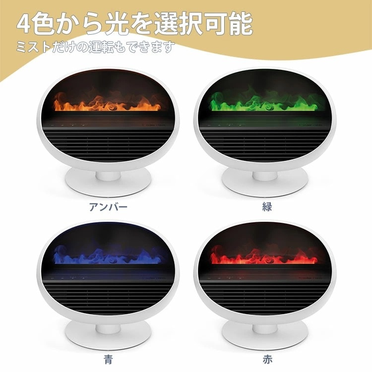【炎の揺らぎ】圧倒的なリアリティと安らぎ ミストとLEDライトが生み出す、まるで本物のようなリアルな炎の演出。 安全・クリーン:熱くならず、煙やススが出ないため安心です。 ロマンチックな癒やし:炎を囲むような、心安らぐひとときを。 【パワフルな温風】すぐに暖まる快適さ PTCセラミックヒーターを搭載。スイッチオンで、すぐに暖かい空気が広がります。 2段階出力:800W/1500Wで調整可能。冬の寒さや足元の冷えを素早く解消します。 安心の安全設計:転倒時自動停止と過熱防止機能付き。お子様やペットがいるご家庭でも安全です。 【アロマ】香りで深まるリラックス 水タンクにアロマオイルを加えるだけ。暖かい空気と共に、お好みの優しい香りが部屋中を満たします。 視覚、嗅覚、温かさの相乗効果で、これまでにない豊かなリラックス体験を提供します。 |