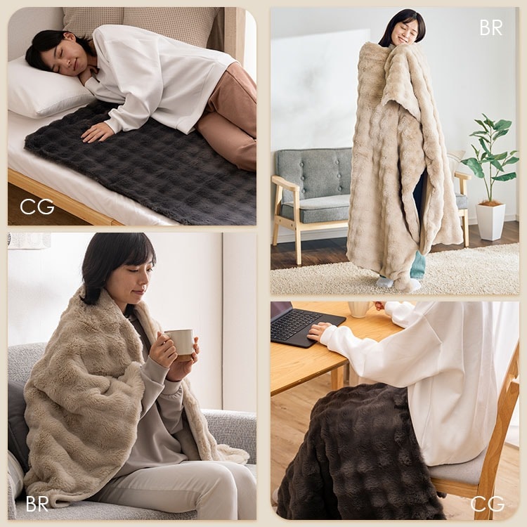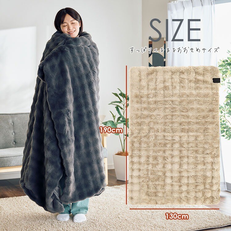 【極上の手ざわり&幅広い使い方で快適】 ● とろける手ざわりの生地 毛足が長く、ずっと触れていたくなるようなやみつきの生地感と暖かさが魅力。極上の肌触りを実現しました。 ● 掛敷両用の電気毛布 ひざ掛け、掛け毛布、敷き毛布としてマルチに活躍。ソファーやベッドなど、幅広いシーンで使えます。 【安心をプラス。いつでも清潔・安全設計】 ● ダニ退治機能で安心 気になるダニも退治できる機能付き。清潔にお使いいただけます。 ● 消し忘れ防止機能付き 電源を入れて8時間後に自動で電源がOFFになる機能付き。安心かつ経済的です。 ● 本体丸洗いOKで清潔に 本体は洗濯機で丸洗いが可能。いつでも気持ちよく、清潔にお使いいただけます。 |