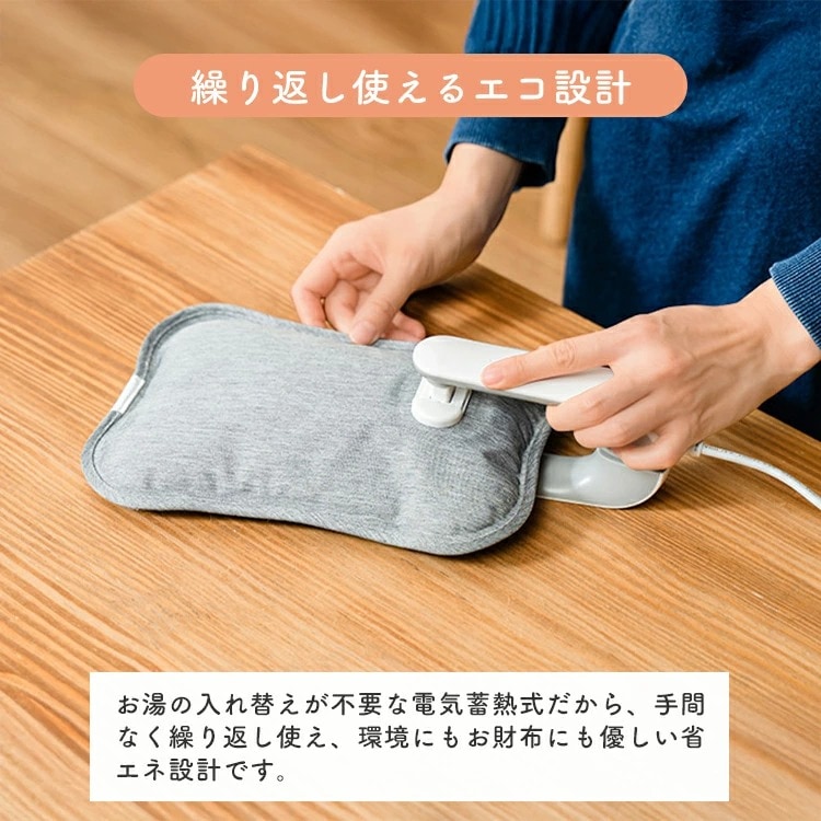 | 仕様 | ●電源:AC 100V 50/60Hz ●消費電力:270W ●電源コード(約):75cm ●蓄熱液:水 ●蓄熱時間(約):15分(室温20℃の場合) ●保温時間(あんか目的):7時間(布団内で使用) ●保温時間(カイロ目的):3時間(身体に当てて使用) ●蓄熱温度(約):60℃ ●耐荷重(約):50kg ●安全装置:温度ヒューズ、サーモスタット |