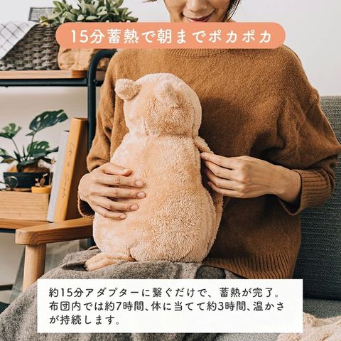 ・15分蓄熱で朝までポカポカ:約15分アダプターに繋ぐだけで、蓄熱が完了。布団内では約7時間、体に当てて約3時間、温かさが持続します。 ・繰り返し使えるエコ設計:お湯の入れ替えが不要な電気蓄熱式だから、手間なく繰り返し使え、環境にもお財布にも優しい省エネ設計です。 ・コードレスでどこでも大活躍:蓄熱後はコードを外せるため、リビング、寝室、アウトドアなど場所を選ばず使用できます。 ・猫好きに贈る最高の癒やし:まるで猫が乗っているような自然な重みと温かさで、心も体もリラックス。ペットが飼えない方への贈り物にも最適です。 ・安心の安全機能と乾燥対策:温度ヒューズとサーモスタットの安全装置付き。暖房器具と違い、お部屋の湿度を下げないため、乾燥が気になる方にもおすすめです。 |