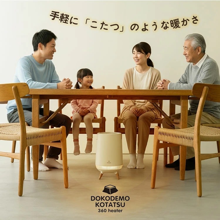 【正規販売店】「寒いダイニングテーブル」を卒業!置くだけで家族みんながぽかぽか。布団いらずの360°温風「どこでもこたつ」で足元の悩みを解決!