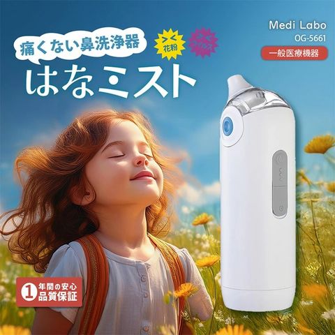 痛くない 鼻洗浄器 はなミスト OG-5661 Medi Labo(電動 痛くない ミスト式 鼻洗浄 器具 子供 風邪 予防 ウイルス 花粉症 対策 2026 鼻水 鼻づまり 蓄膿症 副鼻腔炎 対策グッズ 一般医療機器 鼻腔洗浄器)【送料無料】
