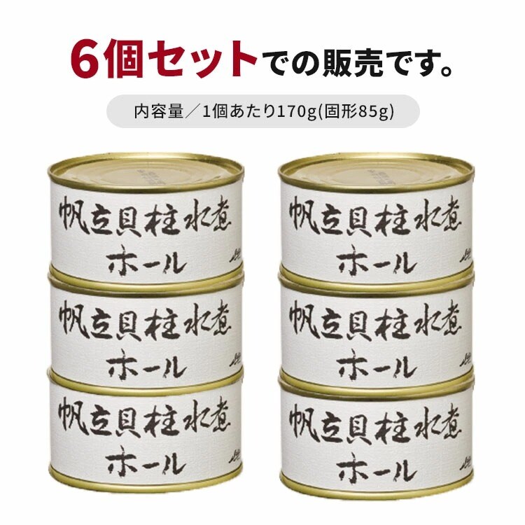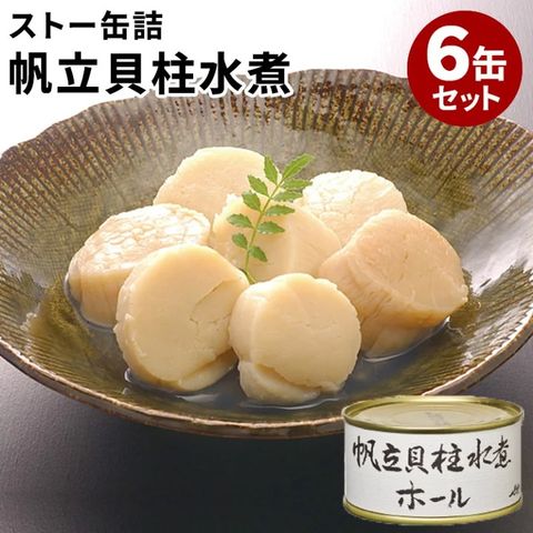 【食品】6缶セット 帆立貝柱水煮ホール ストー缶詰 缶詰め(かんづめ 水煮 貝 魚介 ほたて 加工食品 海鮮 時短 おかず おつまみ ご当地 お取り寄せ お弁当 料理 栄養 タンパク質 水煮缶 人気 お土産 高級)【送料無料】