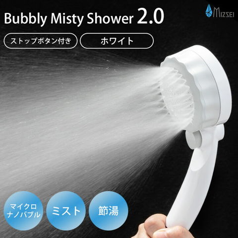 バブリーミスティシャワー2.0 【ストップボタン付き ホワイト SH23W】 (水生活製作所 マイクロバブル シャワーヘッド 節水ミストシャワー)【送料無料】